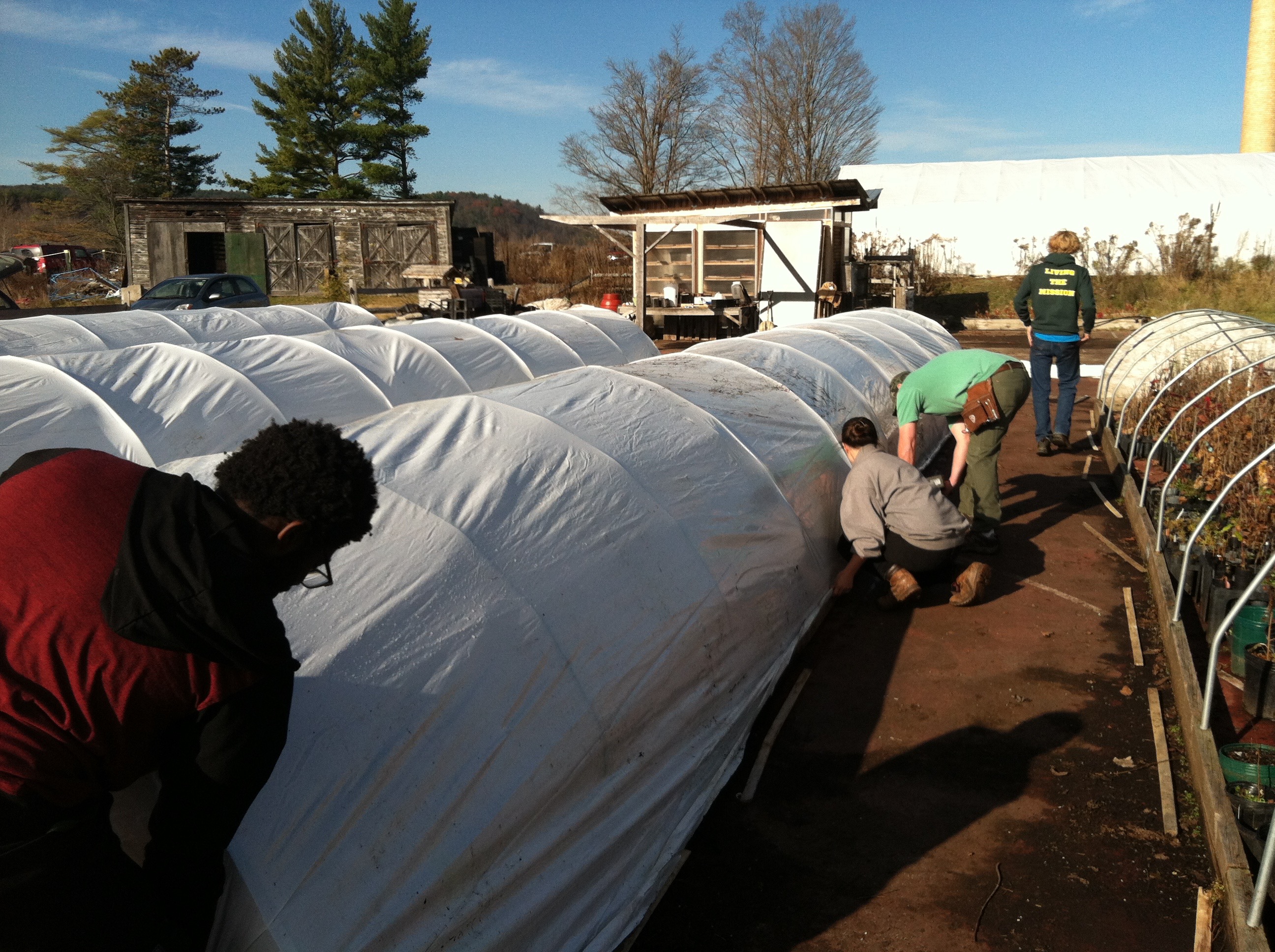 We had the best weather this past Friday for winterizing the nursery! It was t-shirt weather for sure – sunny, warm, with barely a hint of breeze. Perfect for our job. Matt and Beth offer many, many thanks to Keith Roberts for his knowledge, skill and good humor and also to Sarah, Brian and Zach for their steadfast support of the nursery. A great team indeed.