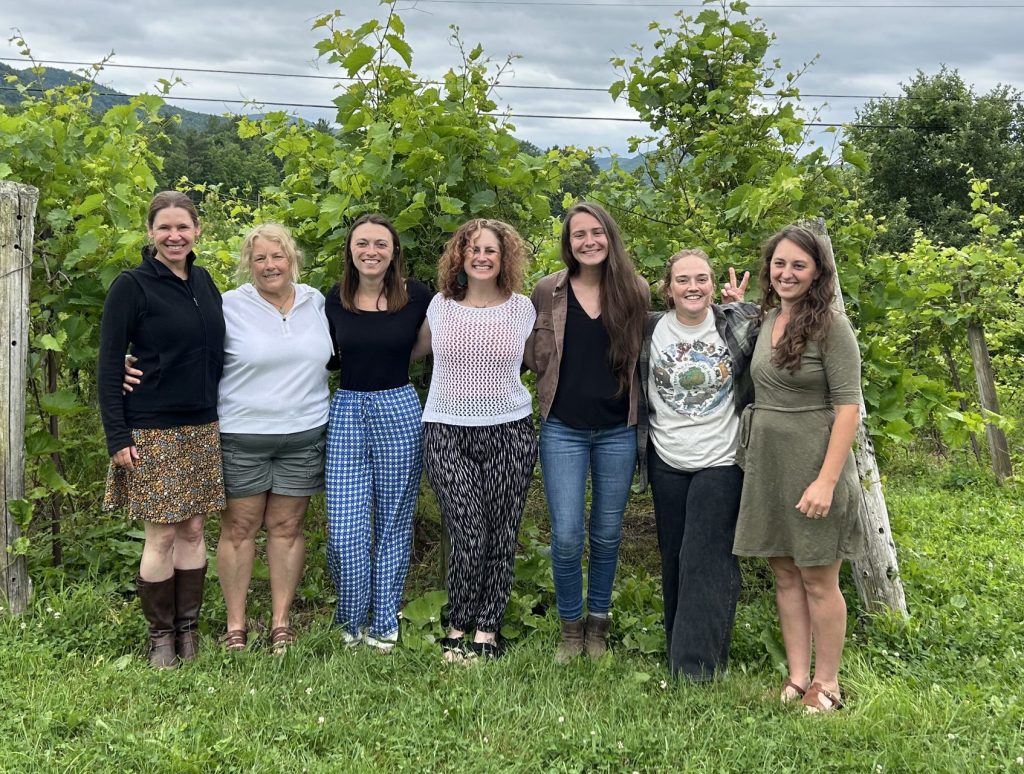 Staff retreat, June 2025 at Whaleback Winery. From left: Hilary, Jennifer, Sadie, Vicki, Whitney, Jaden, and Averie.